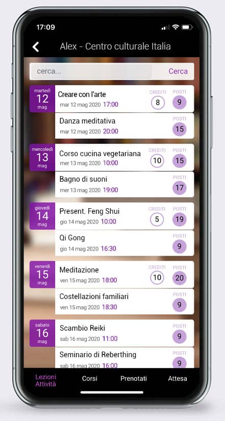 Permetti a tutti i tuoi clienti di vedere queste attività nella loro app e di prenotarsi o mettersi in lista di attesa.