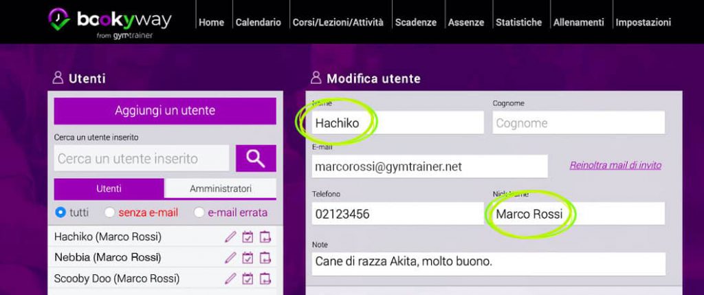 Con BookyWay puoi creare il palinsesto di tutti i corsi e delle attivitĂ che tieni per i cani: